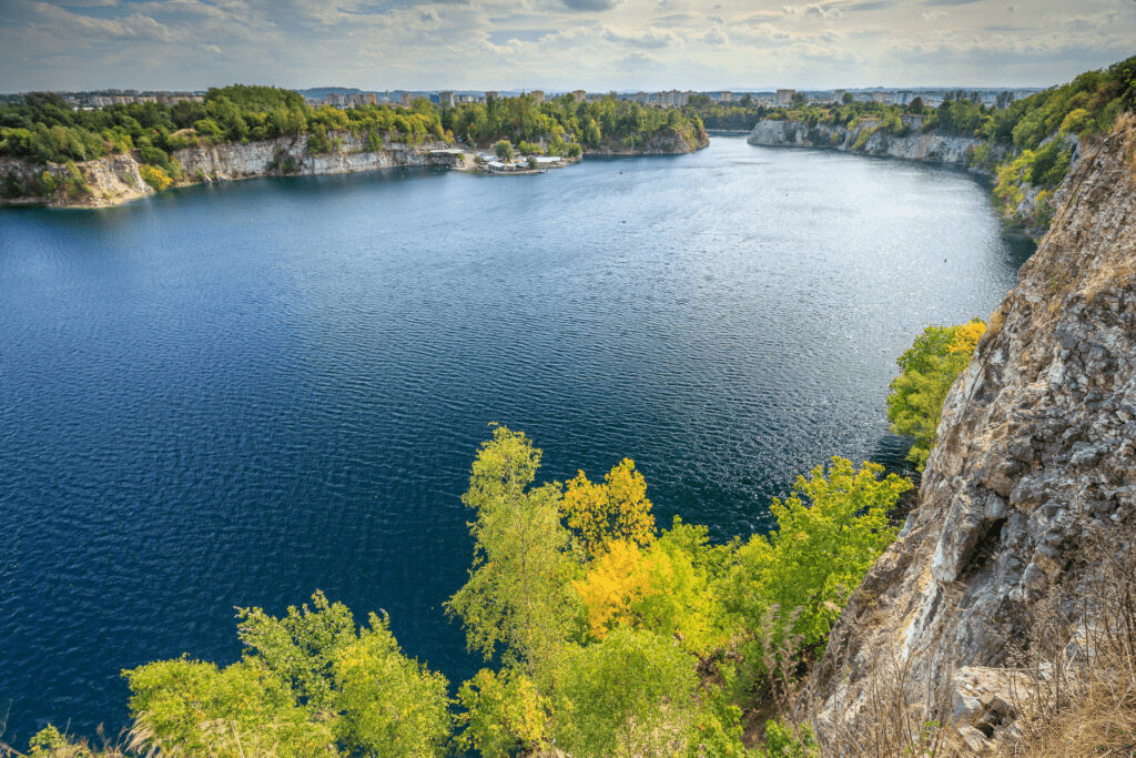 Fascynujące niebieskie jezioro, położone wśród pionowych skał, w XIX wieku było kamieniołomem wapienia. Z czasem zamknięto tu wszelką działalność, wywieziono sprzęt, a miejsce na wiele lat zostało zapomniane. Stopniowo kamieniołom zaczął wypełniać się wodą deszczową, która w ciągu niespełna stu lat zamieniła go w piękny i głęboki zbiornik wodny, który stał się ulubionym miejscem wypoczynku na świeżym powietrzu wśród mieszkańców Krakowa i turystów.
