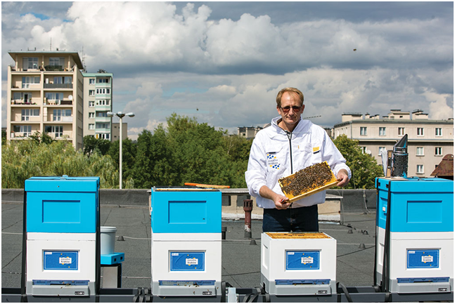 Першими спробували створити пасіки на даху мешканці столиці Польщі, першопрохідцями стали бджолярі даху готелю “Шопен” у Варшаві. Краківська рада легалізувала міські пасіки у 2014 році, знайшлися охочі спробувати. Придбати такий мед або замовити його до сніданку можуть відвідувачі готелю. Смак продукту постійно змінюється, адже це залежить від того, які рослини цвітуть у парках. У Кракові до 2009 року у більшій частині міста діяла заборона на утримання пасік, бджолярам дозволяли займатися улюбленою справою тільки на природі.